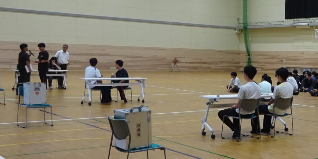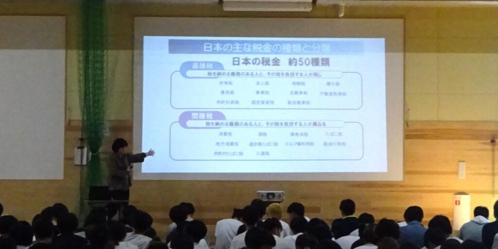 令和7年度 2年生対象厚生補導講演会「出張!県政おはなし講座『「選挙」の大切さを知ろう」を開催 2025年10月20日|学校情報 本校の厚生補導委員会は、10月15日に本科2年生を対象に、和歌山県選挙管理委員会が中心となり、税と選挙のコラボレーション講座を開催しました。 講演では、国や地方財政を支える「税」と、その使用方法を決める代表者を選ぶ「選挙」の重要性について、説明があった後、模擬選挙を実施しました。学生たちは候補者役を担った2名の教員の演説を聞き、どちらの施策が良いのかを考えた後、投票所での受付、候補者への投票、開票作業などといった一連の選挙の流れを体験しました。 本科2年生は成人年齢を控えていることもあり、関心を持って取り組んでいました。 「税」についての説明 模擬投票の様子