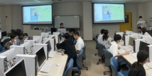公開講座「都市を可視化する(都市と災害編[避難施設と災害リスク])」開催 2025年10月17日|イベント 本校では、公開講座「都市を可視化する(都市と災害編[避難施設と災害リスク])」を、10月4日(土)に環境都市工学科が開催し、中学1年生から中学3年生9名、保護者や見学者5名の、計14名が参加しました。 まず、講師である河村佳紀さんからGIS(地理情報システム)と避難施設の説明がなされました。その後、教員及び学生の補助の下、避難施設と災害情報を地図上に描画しました。最後は、自宅周辺や学校周辺、避難施設周辺の災害リスクを確認し、今まで抱いていたイメージと実際の状況について議論を行いました。 終了後のアンケートでは、「思ったよりも避難施設が少なかった」、「自分が地図を作っている感覚で楽しかった」、「自分の住んでいる地域の危険な場所はどこなのか、避難所はいくつくらいあるのか調べるのが楽しかった」など、新たな発見や楽しさにつながったとの意見が寄せられ、好評でした。 ・講座担当教員:環境都市工学科 准教授 伊勢昇 GISで避難施設と災害情報を描画する様子
