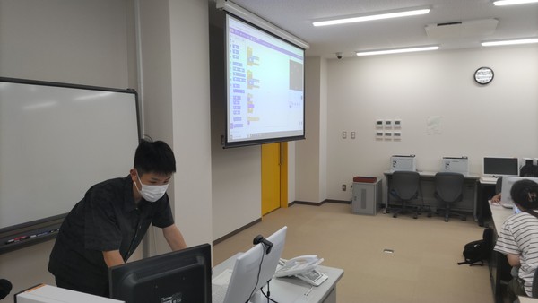 きのくにジュニアドクター育成塾「作ってみよう!避難ゲーム1」開催 2023年10月16日|イベント 本校(校長:井上示恩)が主催する「きのくにジュニアドクター育成塾」において実施する講座の一つ「作ってみよう!避難ゲーム1」が、環境都市工学科 横田恭平 准教授を講師として令和5年10月1日(日)に開催され、塾生の小中学生14名が参加しました。本講座は、対面とオンラインのハイブリッドで実施しました。 講座では、本校の学生である環境都市工学科3年生の河村佳紀くんが説明に協力してくれました。 今回の講座では、プログラミングソフトScratchの使い方について基礎的な説明を行いました。多くの塾生は本プログラムを使ったことがないため、基本的な内容から説明を行いました。 塾生からは、「スクラッチで今まで知らなかった動かし方ができて嬉しかった」、「今日は教えてもらったプログラミングを覚えて、次回の避難ゲームを作る時に頑張りたい」等の感想が寄せられました。 次回の「作ってみよう!避難ゲーム2・3」では実際に避難ゲームを作る予定です。
