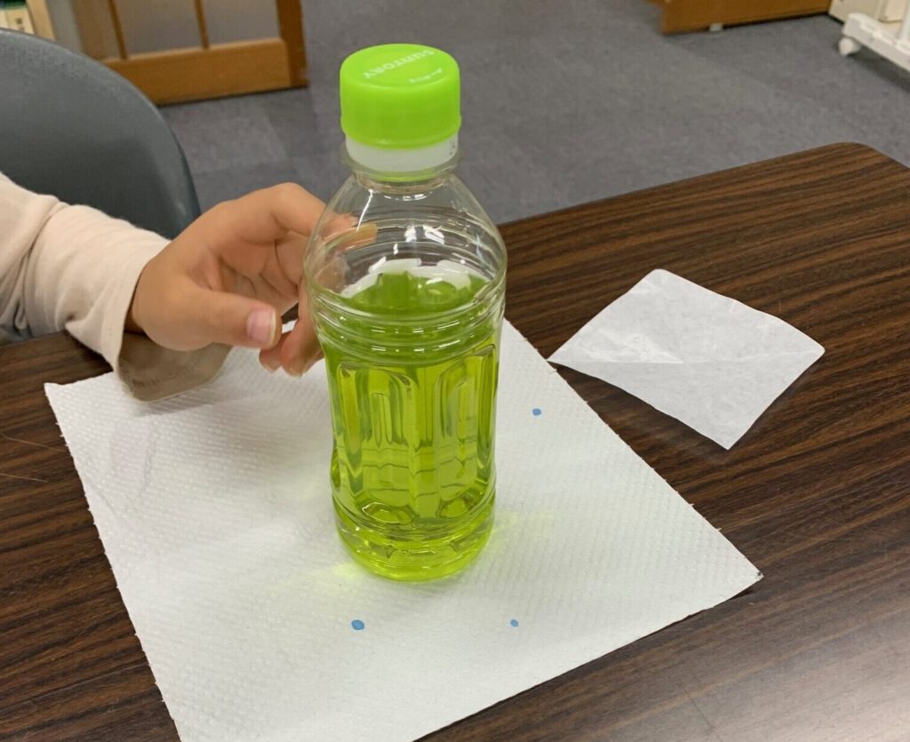 出前授業「化学反応で作る『信号』」開催 2024年11月7日|イベント 本校(校長:井上示恩)の総合教育科(主任:桑原伸弘)では、西嶋政樹講師が、11月2日(土)に有田市立中央公民館において、小学生6名を対象に「化学反応で作る『信号』」の出前授業を実施しました。 西嶋講師から「今日の化学実験では、とても危険な試薬を使うので、緊張感を持って実施するように。そして色の変化をしっかり観察すること!」と説明があり、実験に進みました。 準備したペットボトルに、緊張した面持ちで、電子天秤と薬さじを使ってショ糖を計り取った後、アルカリ水溶液を加え、色素溶液をスポイトで滴下しました。その後、ペットボトルを振ると、色の変化が繰り返し起こり、ペットボトルの中で「信号」を作ることができました。 終了後のアンケートでは「振ると色が変わるのが不思議だと思いました」「化学は面白いです」といった感想が寄せられ、参加した小学生や公民館の方々にも楽しんでもらえた出前授業となりました。 溶液色の変化観察記録 ペットボトルの中の信号 講義の様子 慎重に計測
